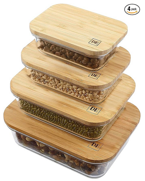 Glass Food Storage Containers with Bamboo Lids (Pack of 4) Eco Friendly Airtight, Plastic Free, and BPA Free.